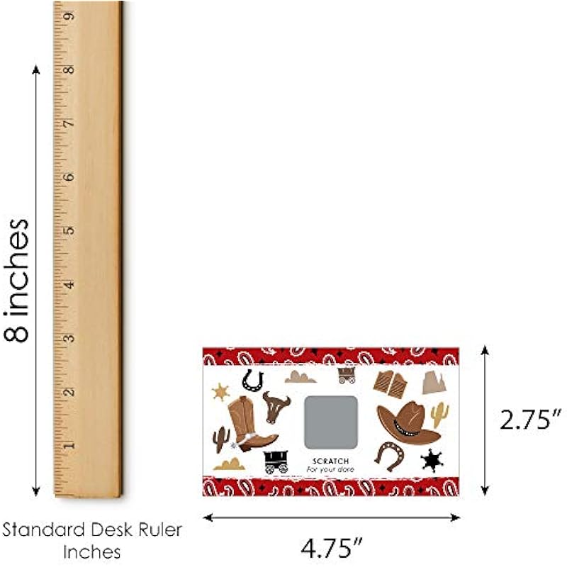 - FUN PARTY GAME: Western Hoedown Scratch-Off Dare Cards will be enjoyed by wild west cowboy party guests of all ages. Each game card measures 2.75″ tall x 4.75″ wide. Scratch-off dares aren’t very risqué, so you can have a fun night out without next-day regrets.