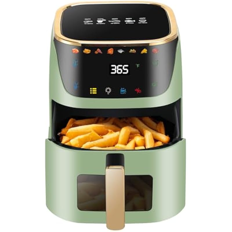- Visible Window with Built-In Light for Easy Monitoring: The air fryer unique viewing window and interior LED light allow you to monitor food, ensuring perfect results every time. This feature is especially convenient for busy moms and fast-food lovers who want to keep an eye on their cooking progress.