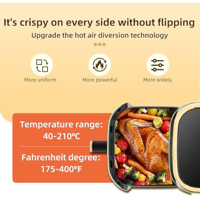 - Adjustable Temperature and Timer: Our air fryer could adjust the temperatur from 175 to 400°F, increment 5°F. Time is range in 1 hour, satisfy with your different cooking needs