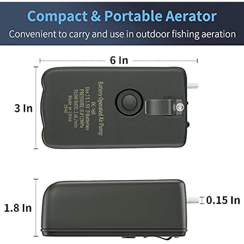 - Portable Aerator: Measure 6″ L x 3″ W x 1.8″ D. Convenient to carry and use in aquariums, tanks, buckets or outdoor fishing aeration.